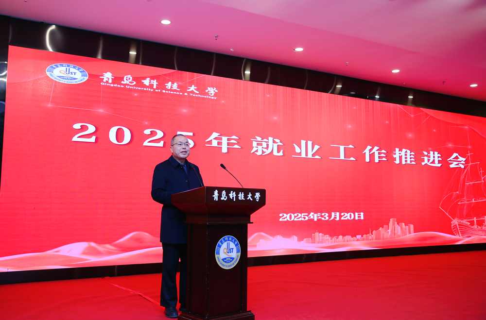 3月20日下午,学校2025年就业工作推进会在崂山校区英科报告厅举行。校长陈克正出席会议并讲话。党委常委、副校长罗细亮,党委常委、组织部部长朱敬义出席会议。党委常委、副校长丁林主持会议。