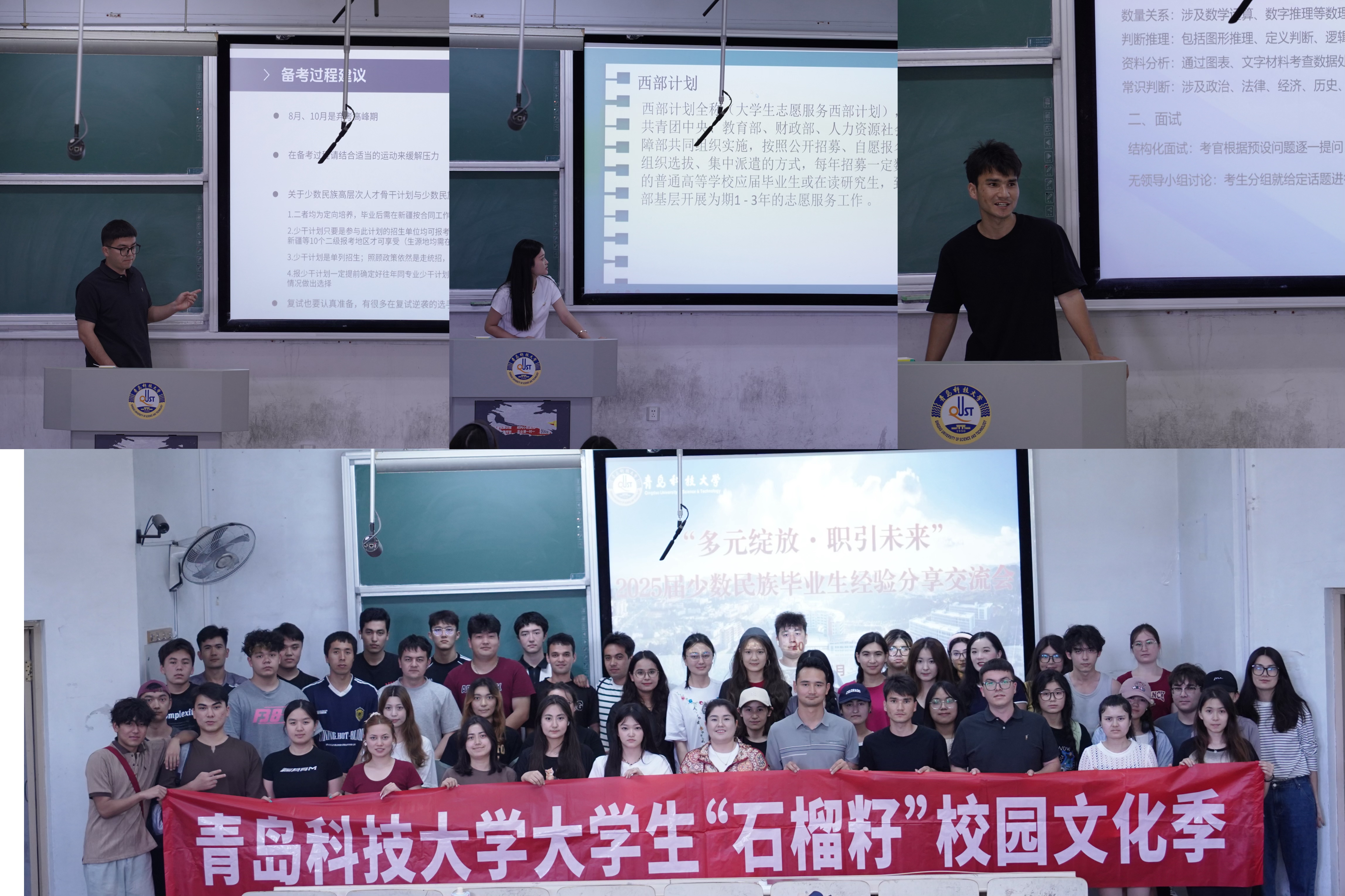 6月17日下午,学校2025届少数民族毕业生经验分享交流会在崂山校区弘毅楼102教室顺利举行。来自自动化学院的肖开提、经管学院的芭丽根、信息学院的艾尼瓦尔等三位优秀少数民族毕业生作为代表,分享了宝贵经验与心得。交流会由少数民族辅导员热孜亚主持。