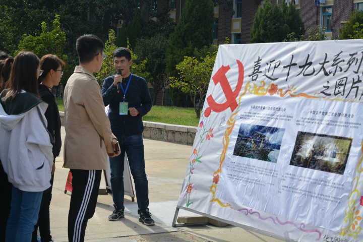 喜迎十九大,共筑中国梦。化工学院举行“忆往昔峥嵘岁月,展未来任重道远”图片展、书法展和绘画展,以介绍党的历史和党的各次代表大会为核心,集中展示了党的发展史以及化工学子的爱党敬党的情怀。同学们自发前来参观,在观看图片的同时,学习了党史,感受到了党的光辉与魅力。