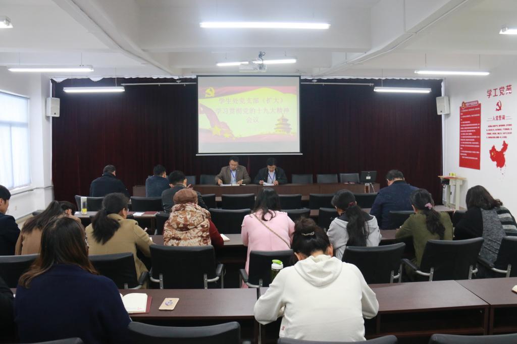 11月6日下午,学生处党支部在心理咨询中心会议室召开扩大会议,部署学习贯彻党的十九大精神。会议由学生处党支部副书记贺炜主持。