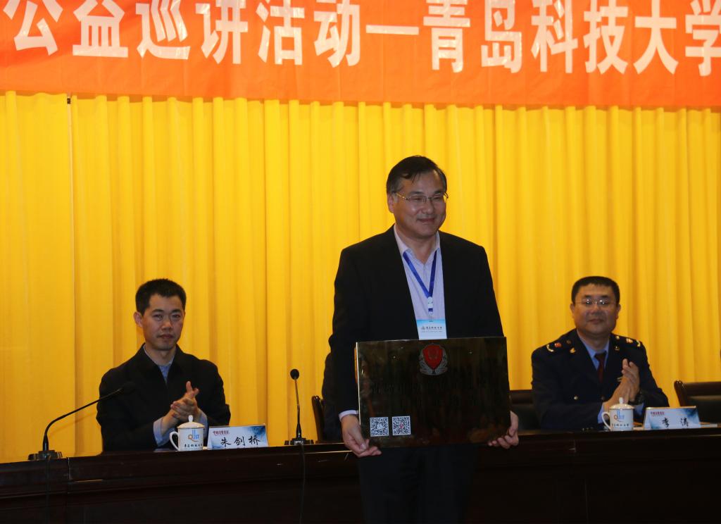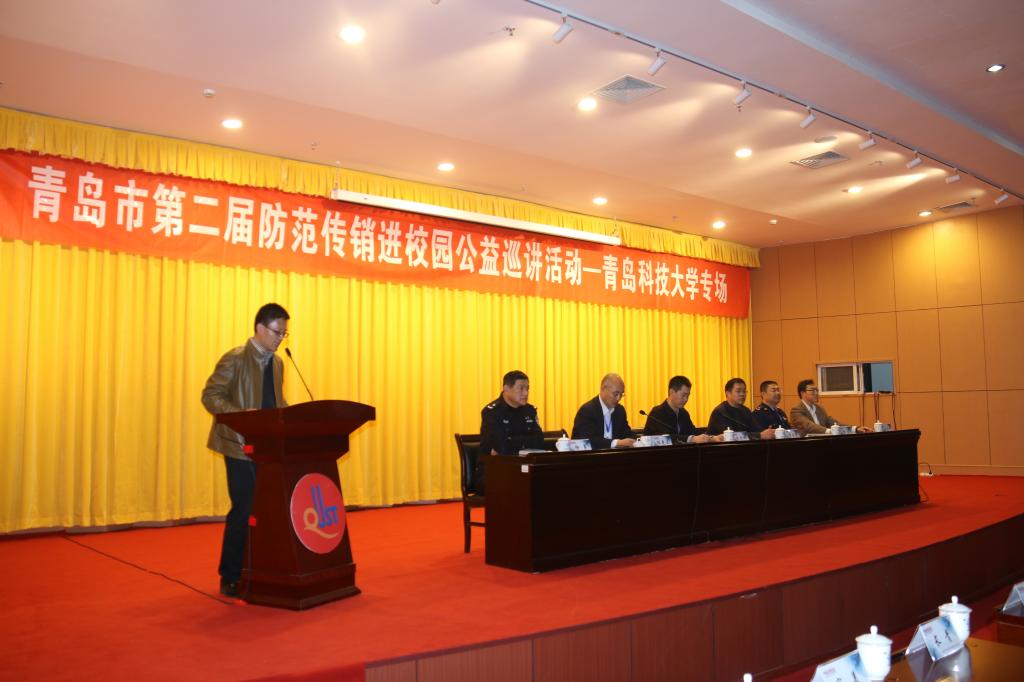 在活动中,青岛市工商局、青岛市打击传销工作联席会议办公室为学校颁发了“青岛市防范传销进校园工作联络站”牌匾,这是青岛市为构建防范传销长效机制、净化校园环境设立的第一个校园联络站。随后,青岛市工商局直销监管处处长李涛为学校学生授课,他从法律法规到实战案例,生动形象地给大家讲授识别传销常识、防范传销的方法、举报传销的途径等,受到学校400余名在场师生的一致好评。