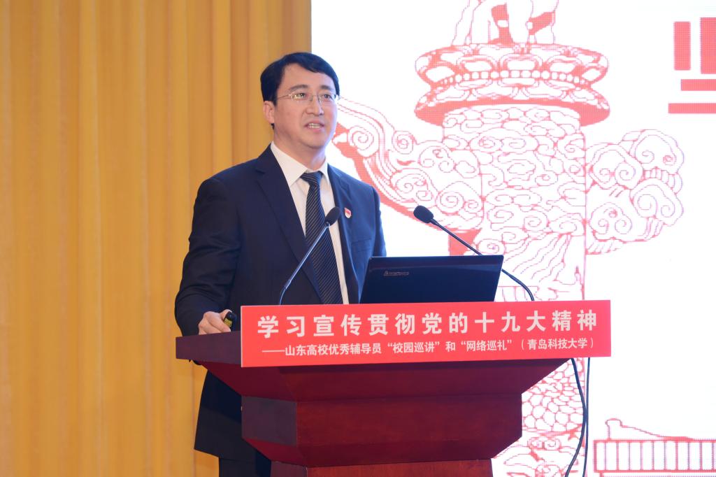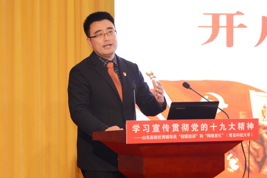 12月14日下午,由中共山东省委高校工委主办、山东高校辅导员工作研究培训基地(山东建筑大学)承办、天游ty8检测中心协办的“学习宣传贯彻党的十九大精神——山东高校优秀辅导员‘校园巡讲’和‘网络巡礼’”活动在天游ty8检测中心崂山校区第三报告厅举行。