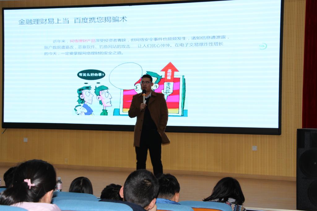 李方超从百度内容安全中心简介、网络信息环境、网络安全基础知识、远离网络暴力、网络诈骗案例、网络诈骗防骗招式等方面向同学们进行了详细讲解,他指出,互联网日趋深度的融入我们的生活,带给我们更丰富体验和可能的同时,也蕴藏着“危机”,校园贷风波、兼职招聘诈骗、助学贷诈骗事件、传销组织以及其他涉黄、涉赌等网络不良信息危害大学生身心健康,甚至导致上当受骗,走向违法犯罪的道路。随后,详细介绍了百度内容安全中心,致力于建立互联网安全新生态,旨在通过采用系统巡查和人工巡查并举的手段,维护互联网清朗环境。于海燕从百度(青岛)智创基地、百度人工智能发展现状等方面进行了详细介绍。她指出,百度(青岛)智创基地是一个旨在全力打造一个基于AI人工智能的全产业链创业生态圈和“创新创业创投”服务平台,并向大家讲述了《百度AI生态伙伴计划》。