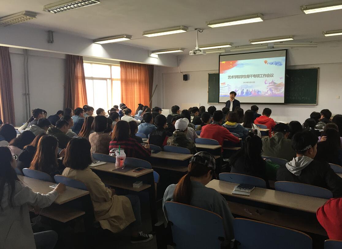 5月22日下午,艺术学院学生骨干专项工作会议在艺术学院302教室召开,学院党总支书记许桂锋,分团委书记赵含、副书记王文艳、辅导员李航,兼职辅导员及主要学生干部参加了会议。