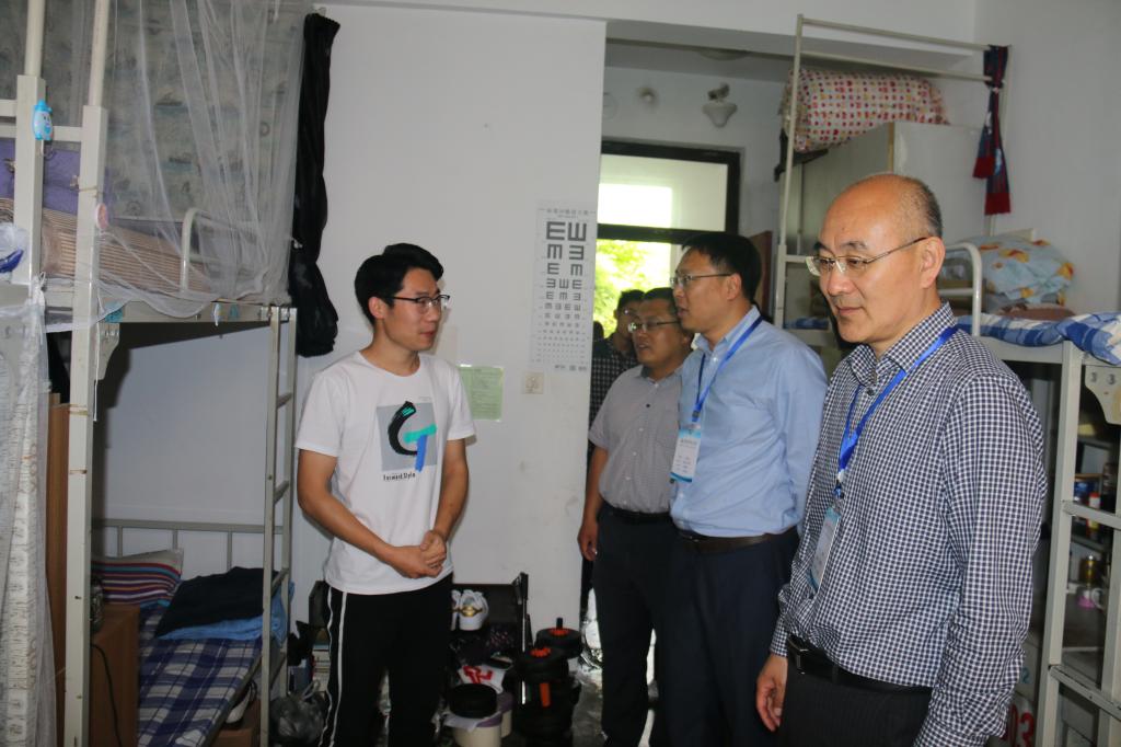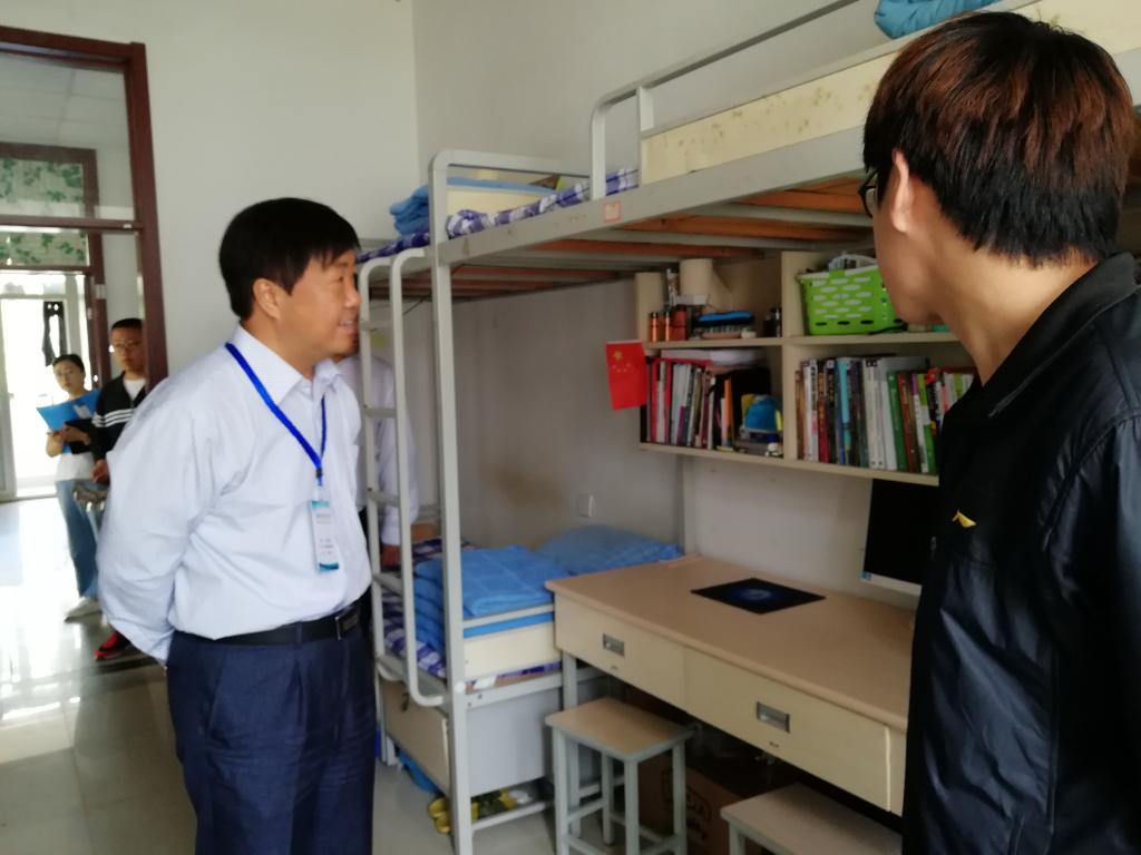 在学生宿舍,陈克正、李伟年十分关心学生的住宿安全和日常生活,同宿舍管理员进行了交流,了解宿舍楼内所采取的安全、服务管理措施,与学生亲切交谈,询问同学们的学习、生活情况,并叮嘱他们要提高安全防范意识,注意安全用电。