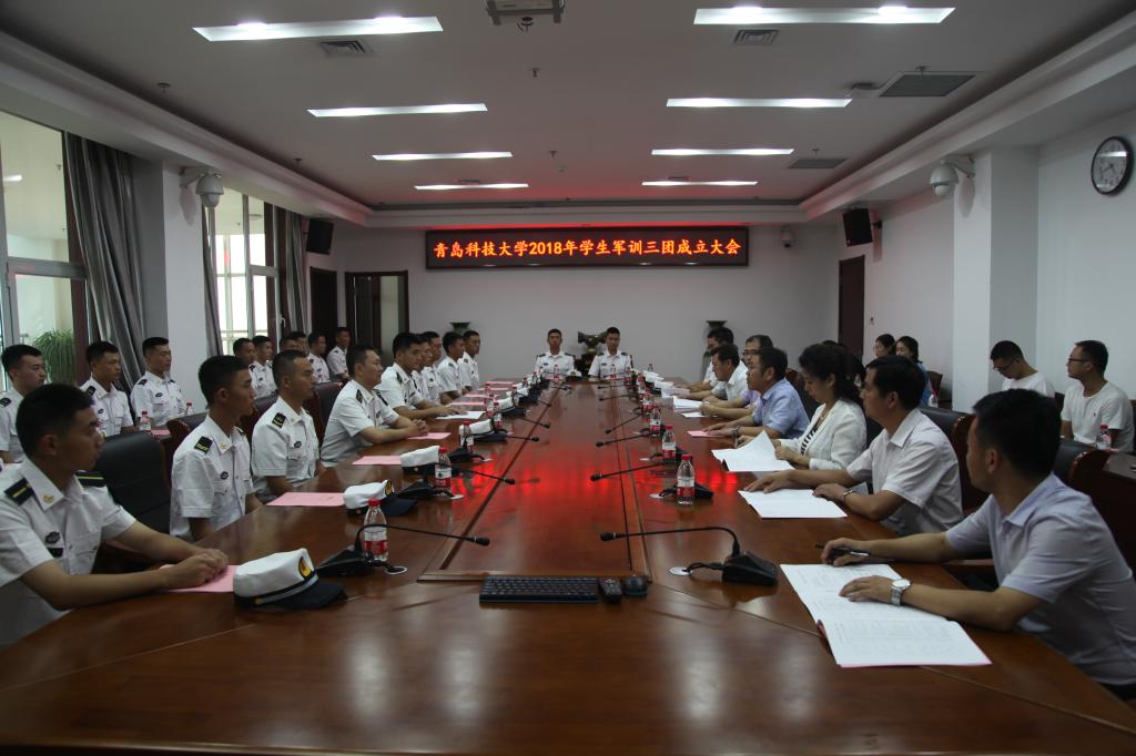 9月8日下午4点,天游官网2018级学生军训一、二、三团成立大会分别在崂山校区第一报告厅、四方校区第一会议室、高密校区会议室同时举行。学校武装部部长陈刚,学生处副处长贺炜,武装部副部长曹永俊分别在崂山、四方、高密校区主持军训团成立大会。