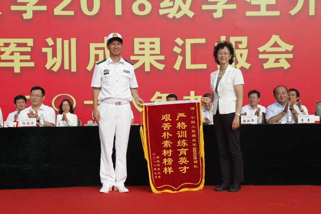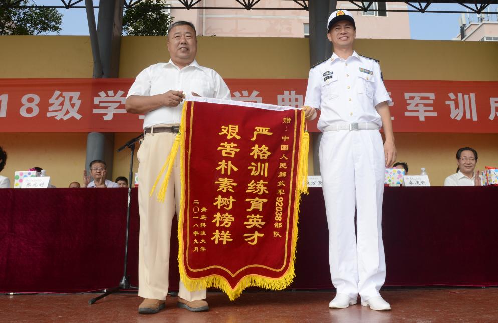党委副书记张元利、副校长张淑华代表学校向92038部队赠送锦旗,副校长李勇在典礼上宣读了《天游ty8检测中心关于表彰2018级学生军训先进集体和优秀教官的决定》《天游ty8检测中心关于颁发2018年优秀新生奖学金的决定》。获奖的军训先进营、内务先进营、军训先进连、优秀教官代表,以及优秀政治教导员上台领奖。53名新生领取了新生奖学金,其中普通本科生29人每人奖励5000元,中德合作办学项目23人每人奖励30000元、中法合作办学项目1人奖励20000元。