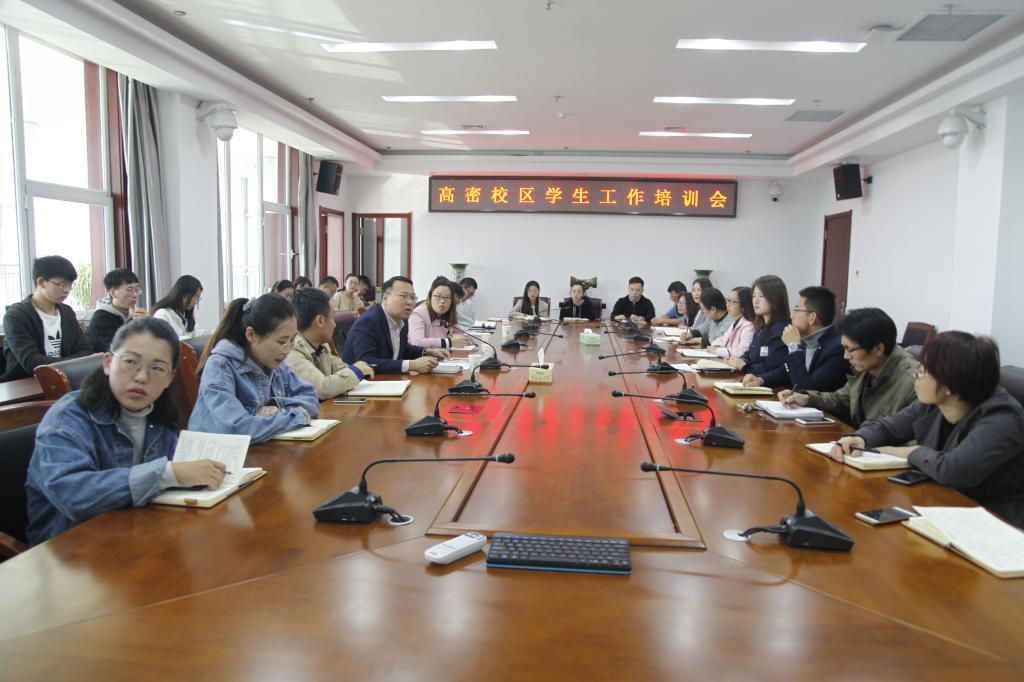 下午,高密校区各系分团委书记和学工相关人员在真人图书馆“借阅”了贺炜。就公寓文化建设和学工日常工作等方面进行了深入的交流学习。