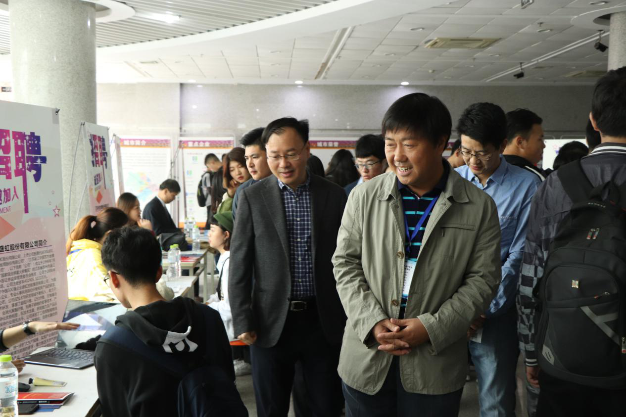 招聘会期间,副校长李伟年,学生处及各学院负责人深入现场了解情况,并于吴江区人力资源和社会保障局副局长高继勤,吴江高新区组织人事和社会保障局局长吴伟红及部分企业负责人进行了深入交流。