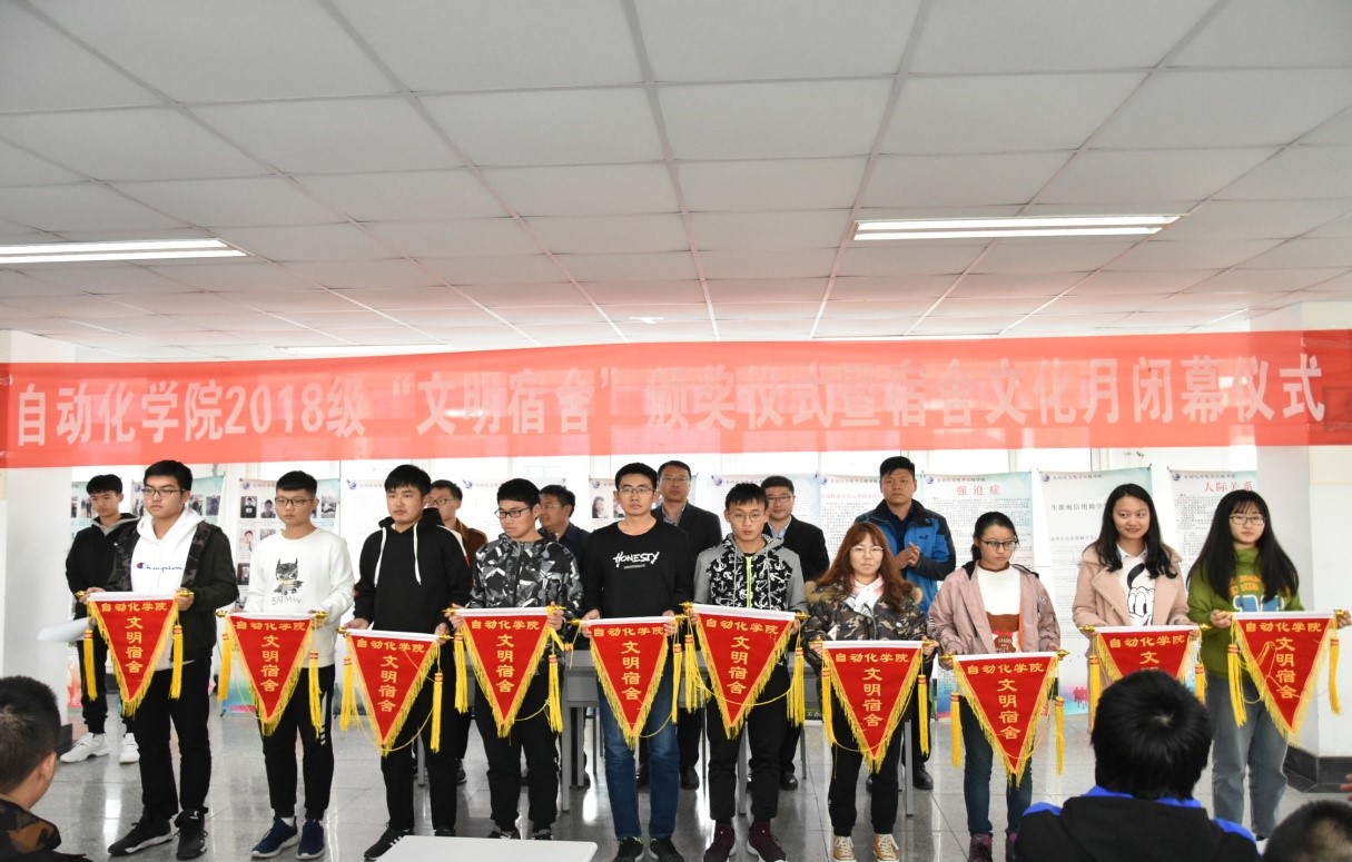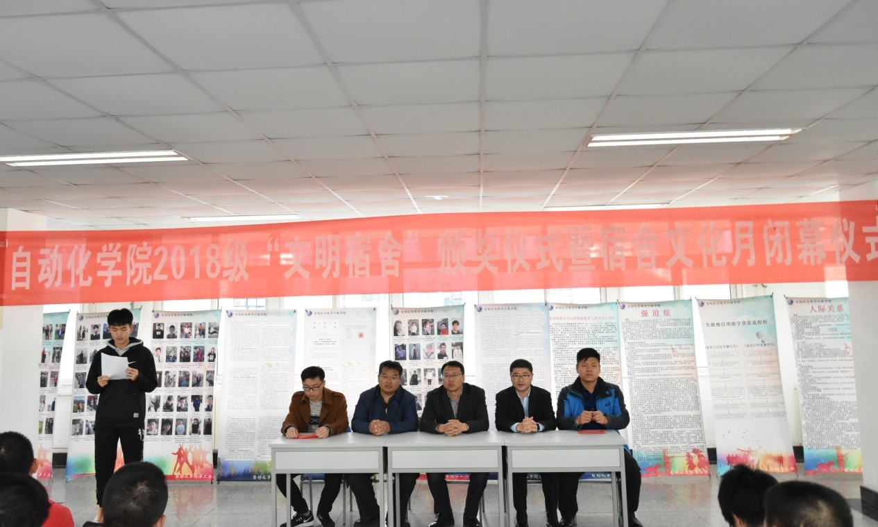 11月13日下午,自动化学院文明宿舍颁奖典礼暨宿舍文化月闭幕仪式在北苑七号楼学院“学习吧”举行。学生处副处长贺炜、自动化学院副书记马寒、公寓中心老师、学院辅导员出席活动。