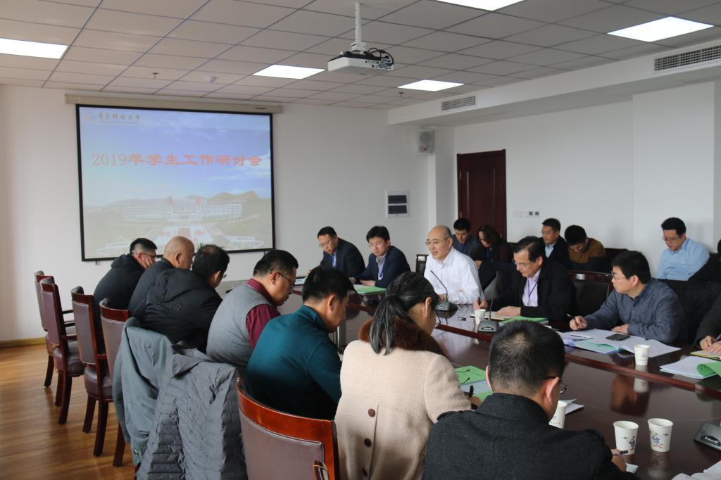 会议研究了学生发展指导服务体系和“四年不断线”学生成长综合培养体系具体实施问题,讨论了学校2019年学生工作要点、辅导员职称晋升门槛条件等事宜。各单位还就自身的特色工作做了交流发言。