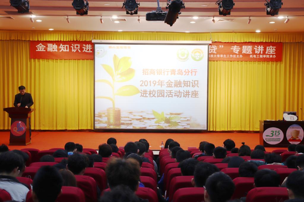 为提升广大学生的金融知识水平和金融风险防范意识,远离非法金融,保障财产安全,3月12日下午,学校举办“3·15金融知识进校园”活动。此次活动由学生处主办、机电学院承办。招商银行李沧支行行长助理周鑫、主管马国强,学生处教育管理科科长陈兵、机电学院学工办主任王作辉参加了活动。