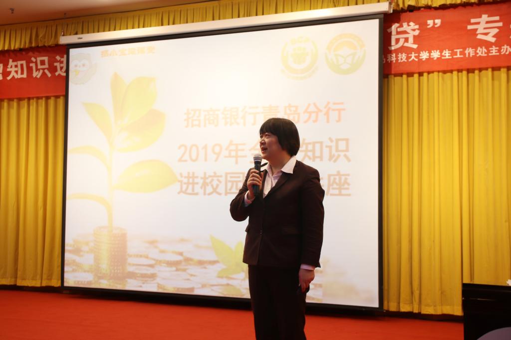 活动中,招商银行青岛分行消费者权益保护服务监督管理中心讲师王燕丽,从有效防范电信网络诈骗及校园毒贷款、如何形成良好金融消费习惯、个人信息保护三个方面给大家进行了讲解。她以详实的数据、丰富的案例配上朗朗上口的顺口溜,提醒广大青年学生提高信息安全意识,远离网络借贷信息中介;了解自己财务状况,培养财务管理意识;要在享受金融便捷服务的同时,全面了解金融知识、树立正确金融观念、远离各类金融陷阱。她还强调,大学生要保持良好的个人征信记录,为在校学习生活提供可靠保障,更为自己今后走上更广阔的人生道路奠定良好的诚信基础、道德基础、法律基础。