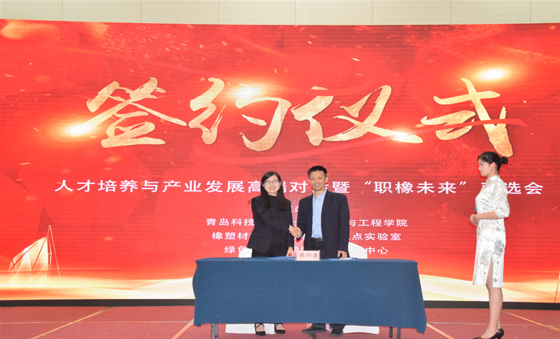 宗成中分别与道恩集团有限公司、倍耐力轮胎有限公司、青岛森麒麟轮胎股份有限公司、南京利德东方橡塑科技有限公司等签订了《奖助学金设立协议》、与蒂普拓普(天津)橡胶技术有限公司签订了《设立大学生实习基地协议》。高分子学院党总支书记孙洪广为金昌盛科技有限公司董事长孙仙平、道恩集团有限公司青岛研究院院长陈军、富士康广州优尔材料科技有限公司专理卞学、潍坊昌海化学有限公司副总经理崔守杰、山东阳谷华泰化工股份有限公司副总经理杜孟成颁发校外发展导师聘书。