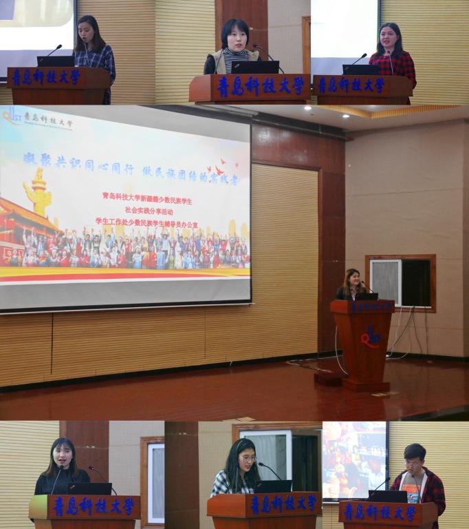4月23日,学生处分别在崂山校区第一报告厅和四方校区243教室召开新疆籍少数民族学生社会实践分享会,少数民族辅导员热孜亚和巴合提努尔分别主持会议。