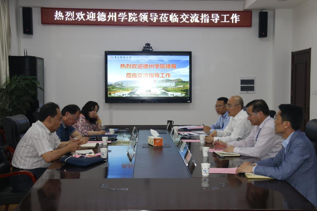 座谈会上,陈克正对张存峰一行的到访表示欢迎,并介绍了学校的办学历史、学科特色、“双一流”建设等基本情况。张存峰介绍了德州学院学校概况、优势学科、学生工作开展等情况。双方就易班建设、公寓管理、辅导员队伍建设、学生思想政治教育、学生资助、创新创业教育、创新创业基地建设与管理、创新创业赛事组织与管理等方面进行了充分交流。