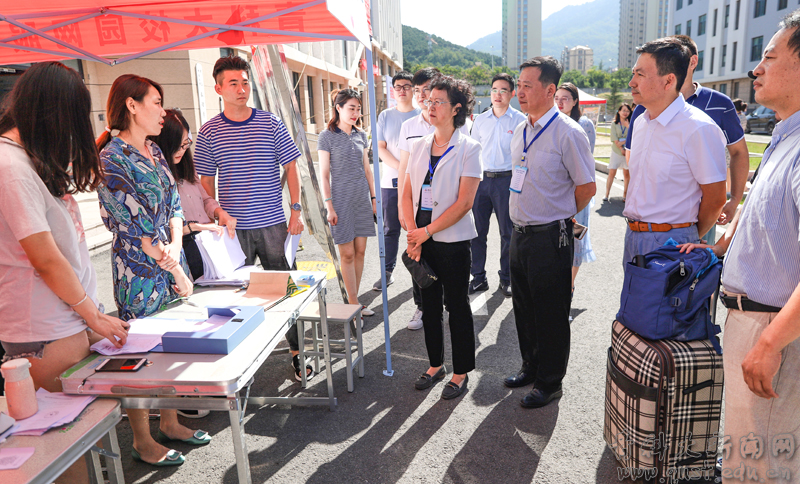 8月30日,天高云淡,金风送爽,天游ty8检测中心校园内人潮涌动、彩旗飘扬、横幅高挂,全体科大师生热烈欢迎来自全国各地的2019级新同学。校领导李庆领、张淑华、韦殿华、陈克正在相关职能部门负责人的陪同下,来到各学院迎新接待点,共同迎接新生入校。