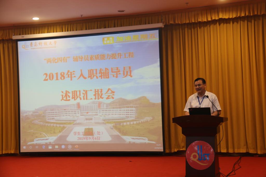 9月6日下午,学校在崂山校区第三报告厅召开2018年入职辅导员述职汇报会。学生处处长陈刚、校团委书记王锋业,各学院、校区分管学生工作书记、全体专兼职辅导员参加了汇报会。会议由学生处副处长贺炜主持。