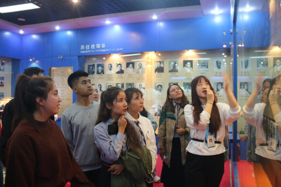在校史馆内,从四方校区和崂山校区的沙盘模型到高密校区的鸟瞰图,轮胎形象门以及一张张的旧照片,一份份珍贵的文件,向同学们直观生动地展现学校近70年的历史变革、学科建设、教学、科研和对外合作与交流等方面取得的显著的成绩,教育引导广大少数民族学生更加紧密地团结在以习近平同志为核心的党中央周围,把“初心”和“使命”融入到立德树人全过程。