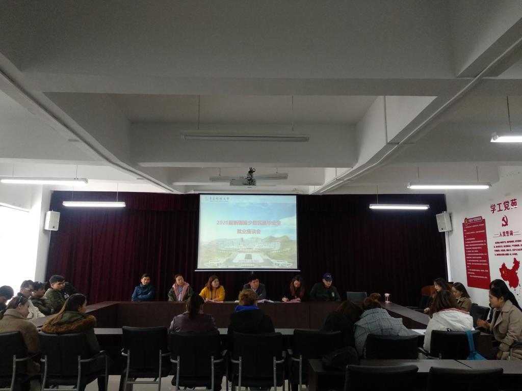 会上,热孜亚老师对2020届新疆籍少数民族毕业生的情况、特点及往届的就业情况做了介绍。就业中心副主任王帅对今年的就业形势、学校的帮扶举措等方面做了解读。座谈会围绕2020届新疆籍少数民族毕业生目前的就业进展、面临的就业困难、以及对学校就业工作的建议等方面展开讨论。参会的同学都一一发言,介绍了自己目前的就业进度,讲述了求职中遇到的困难。