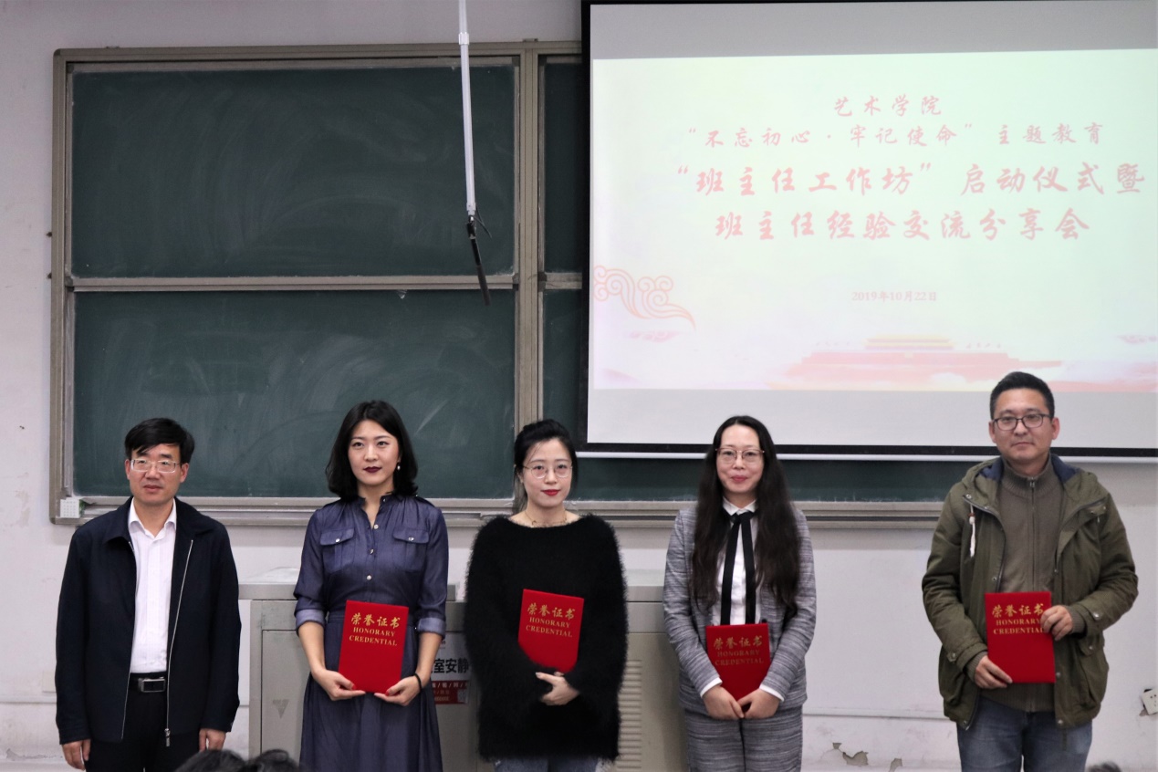 学院特以庆祝新中国成立70周年和以“不忘初心、牢记使命”主题教育为契机于10月22日举行艺术学院“班主任工作坊”启动仪式暨班主任经验交流分享会,以工作坊为载体,树立先进教师模范带头作用,交流学院班主任参与思政工作有效经验,增强学院思政队伍建设的稳定力量,进一步完善教师协同育人的科学模式。11月19日,依托“艺院之星”共选评出包括学习、工作、创新、创业、自强、活力、体育、志愿、党员、宿舍在内的十名“艺院之星”,结合“有声有色”的专业特色,树立学生先进典型,力求巩固“身边人讲身边事儿,身边事儿激励身边人”效果,着力培养 “五有”科大学子。