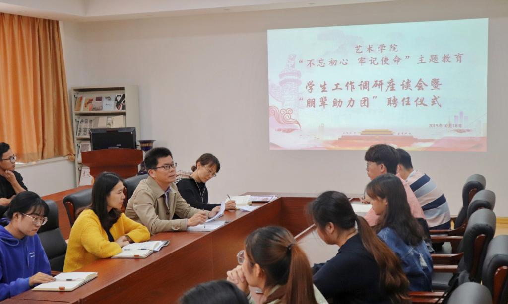 为进一步扎实开展“不忘初心、牢记使命”主题教育,切实巩固为党育人初心、立德树人使命,加强团学干部队伍建设,引导学生成长成才成人,近期,艺术学院开展系列学生工作专项活动,围绕安全教育、先进典型教育、学风建设、心理健康教育等方面践行德、智、体、美“四育工程”,丰富学生工作体系,升华“青春艺院,艺起成长”学生工作品牌。