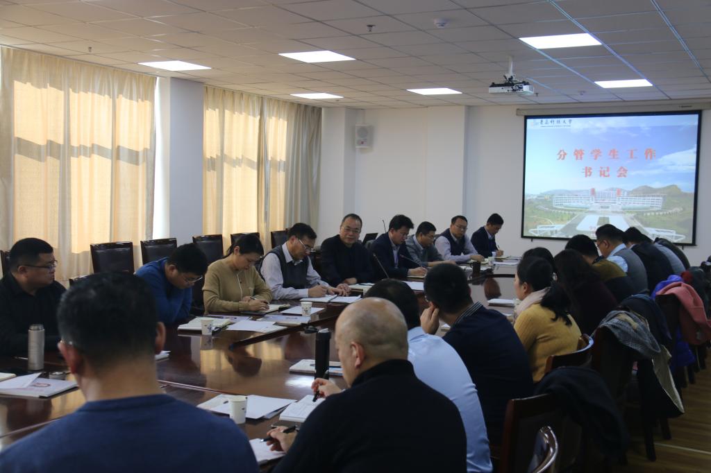 校团委、教务处、学生处等部门负责同志出席会议,并对近期学生工作作了具体部署。各学院、校区分管学生工作书记参加了会议。