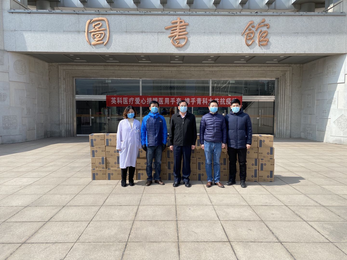 3月10日,英科医疗科技股份有限公司向学校捐赠一批疫情防控医用物资——5万支医用丁腈手套,用于支持学校疫情防控工作。学生处、后勤处、教育发展基金会等部门代表学校接受了捐赠。