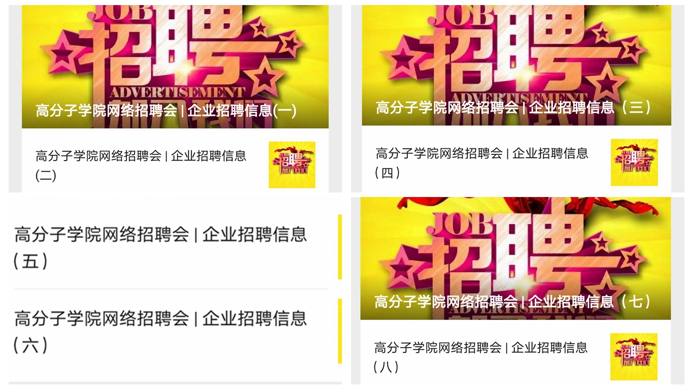 据悉,高分子学院2020届毕业生共计789人,其中博士研究生15人,硕士究生149人,本科生625人,截至目前,已经签约216人,其中签约本次网络招聘会企业64人。疫情期间为毕业生求职带来了困难,高分子学院通过一生一策、精准帮扶、“互联网+就业”等方式扎实推进毕业生就业工作,实现网络招聘全天候、常态化、不间断、不停歇。