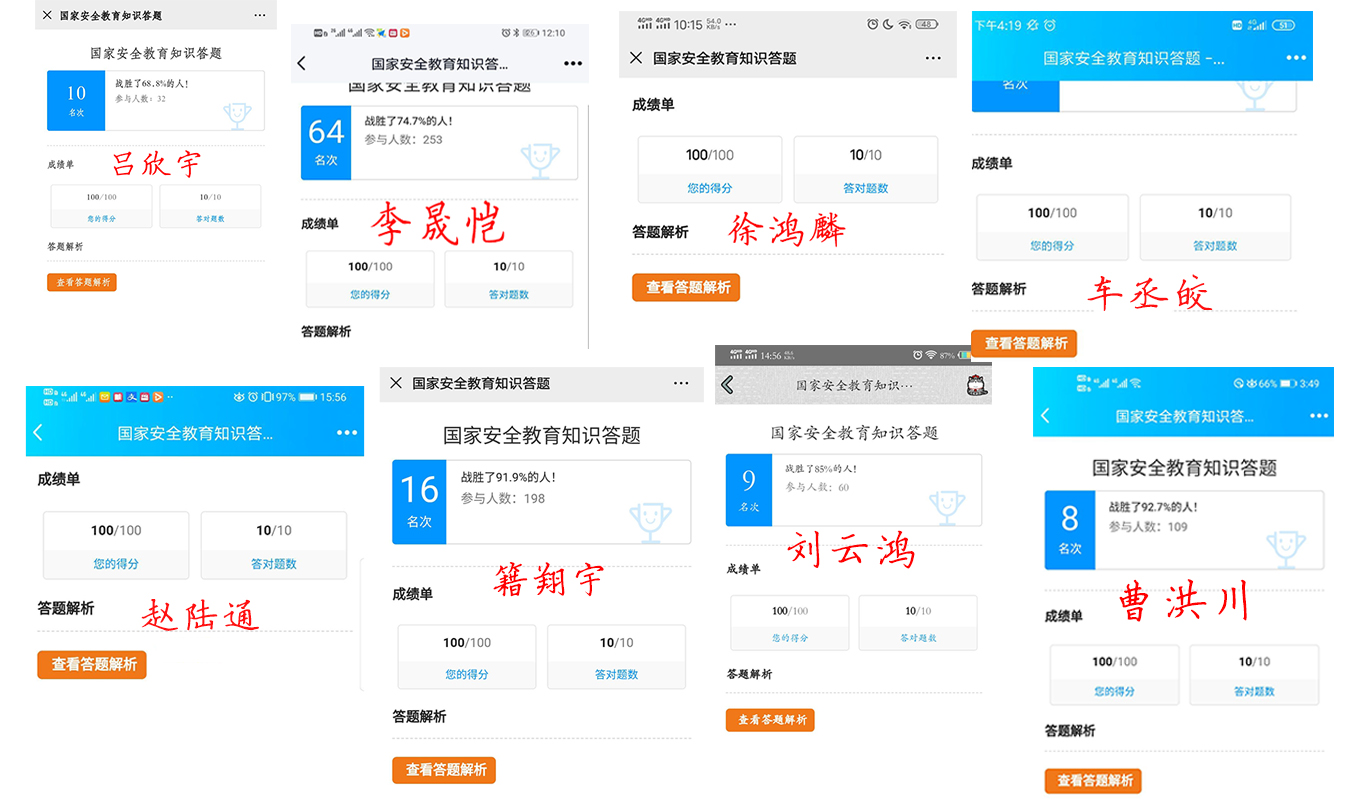 学院学生会利用微信和大学生在线平台组织全院学生参加国家安全知识专题网络知识竞赛,以赛促学,不断推动国家安全知识入脑入心。