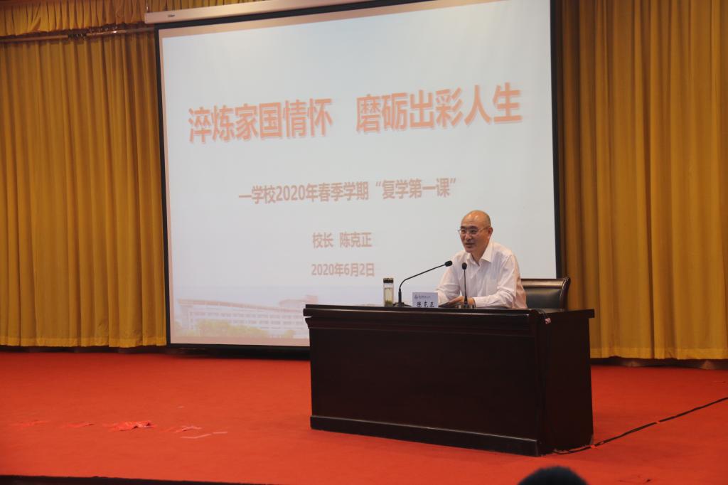 陈克正首先对同学们顺利返校表示热烈欢迎,向广大家长朋友们在过去一段时间里为孩子的“云”学习提供的支持和帮助表示感谢。其次,他围绕国内外和天游官网疫情防控形势,结合对疫情的体会和感受,以《淬炼家国情怀 磨砺出彩人生》为题,分别从爱国主义“常量”、因势而新“变量”、全面成长“增量”三个“量”的角度,引经据典、情真意切地为师生讲授了一堂生动、精彩的复学第一课,一次深刻、难忘的思政教育课。