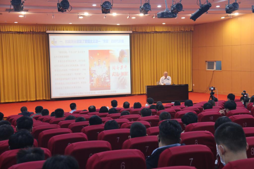 课堂上,陈克正以一名学长和长辈的身份,与同学们分享了看到同学们返校复学后的喜悦心情,分享了疫情防控中的点点滴滴。他指出,我们要从国家大义和个人发展的角度认真思考疫情带来的启示,一是抗疫战斗再一次激发“爱国主义”的磅礴伟力。爱国主义在抗击疫情中拉紧了全国各族人民愈加团结的精神纽带,支撑起舍小家为大家的民族脊梁,树立起无数中华儿女为国担当的精神信仰。二是抗疫战斗再一次证明“中国之治”的制度优势。“中国之治”在应对“两个大局”和“世界之变”对比中彰显出无限生命力,国家治理体系和治理能力在疫情大考中交出了合格答卷。三是抗疫战斗再一次记录“青年一代”的使命担当。抗击疫情过程锤炼了翩翩君子的“家国情怀”,历练了时代新人的“勇挑重担”,锻炼了国之栋梁的“过硬本领”。四是抗疫战斗再一次凸显“党的领导”的根本作用。我们在抗击疫情中深刻理解了中国共产党为什么“能”,坚定了永远跟党走的理想信念。