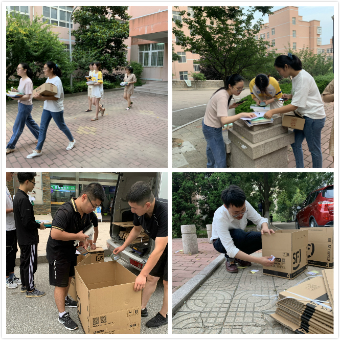 疫情的突然袭来,让很多同学的生活、学习物品留在了学校宿舍,给日常学习、生活带来了诸多不便,机电工程学院坚持“以生为本”的理念,为更好的服务学生,不断提升劳动育人成效, 7月9日—10日组织已返校的学生干部、入党积极分子以及热心同学,担起“快递员”的角色,为有需要的学生邮寄笔记本电脑、学习资料等物品。