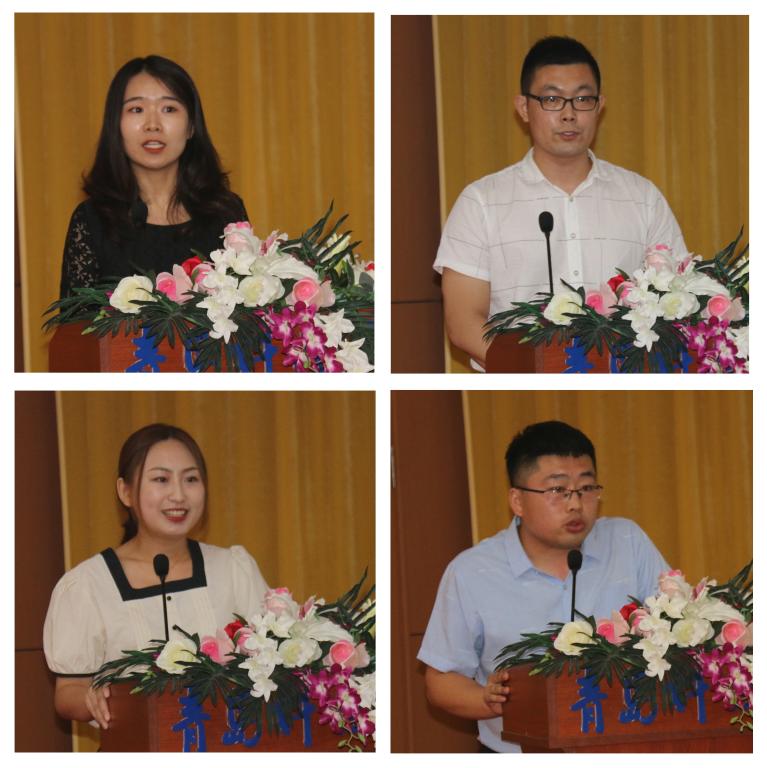 会上,高校辅导员素质能力提升高级研修班学员、艺术学院辅导员巩金梦,全国高校心理委员工作研讨会学员、高密校区辅导员李鹏飞,全省高校第二十二期辅导员岗前培训班学员、高分子学院辅导员高媛,山东省学生资助业务提升与队伍建设培训班学员、资助管理中心郑开齐,高校创业咨询师培训班学员、化学院辅导员刘夕升,新疆籍少数民族学生管理教师和辅导员培训班学员、少数民族学生辅导员热孜亚,2019易班全国共建高校学生易班网评员队伍培训班学员、综合信息中心鞠晓聪,“科研育人与辅导员科研能力培养”专题培训班学员、化工学院辅导员王乐昌先后做了交流发言。