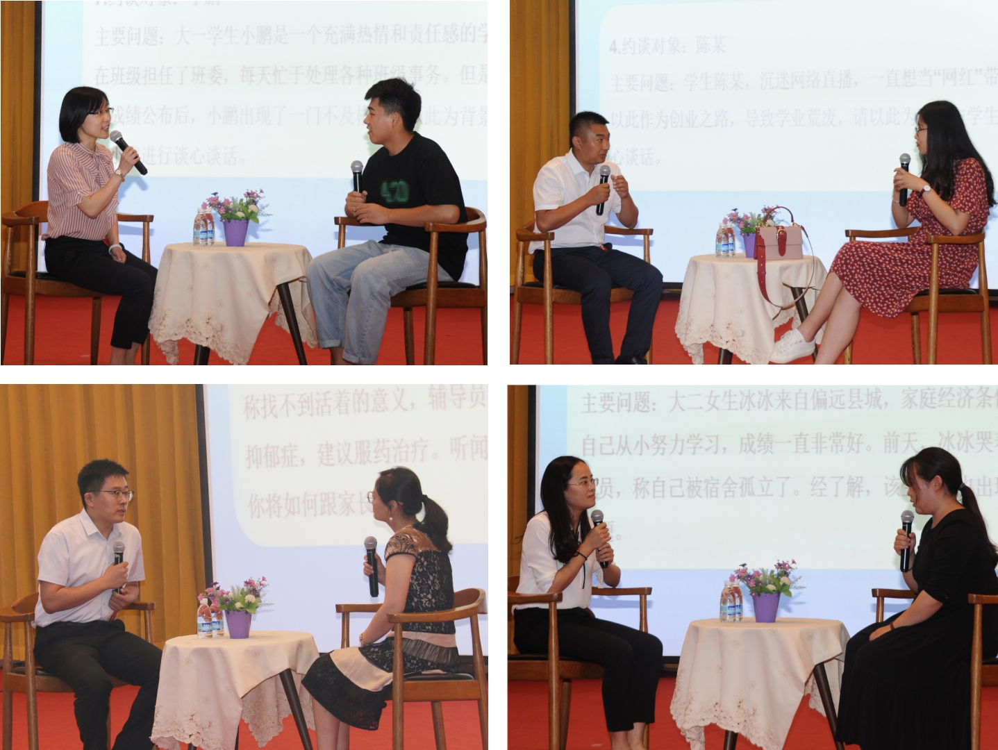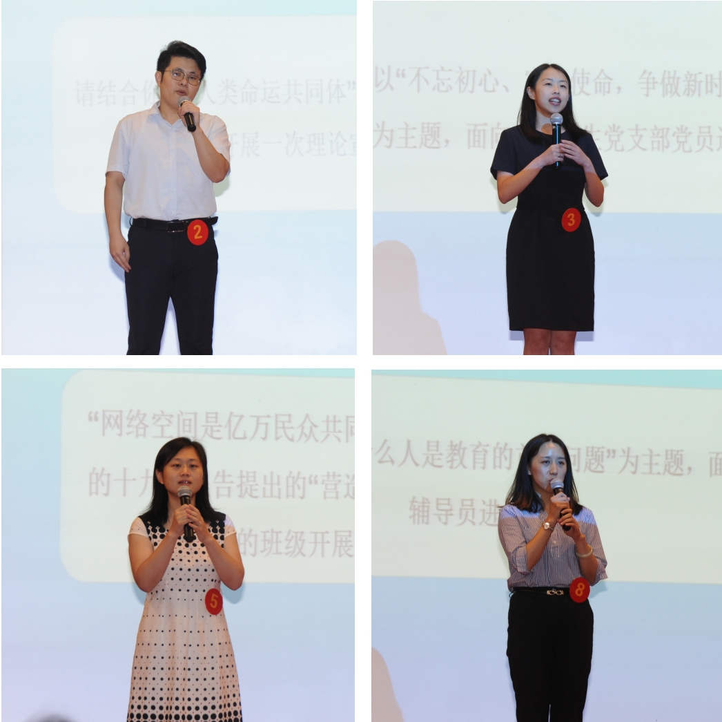 经过笔试、复赛等环节的选拔,全校共有8人入围决赛,决赛包括谈心谈话和理论宣讲两个环节。谈心谈话环节,八位选手结合学生工作经验,合理运用心理学、教育学等专业知识,分别与面临不同问题的学生进行了深入分析和教育引导,精彩表现赢得现场评委和观众的阵阵喝彩;理论宣讲环节,八位选手紧扣时代主题、社会热点、学习要点和工作重点展开宣讲,既“说理”又“讲情”,既“顶天”又“立地”,宣传了新思想,唱响了主旋律,传播了正能量。