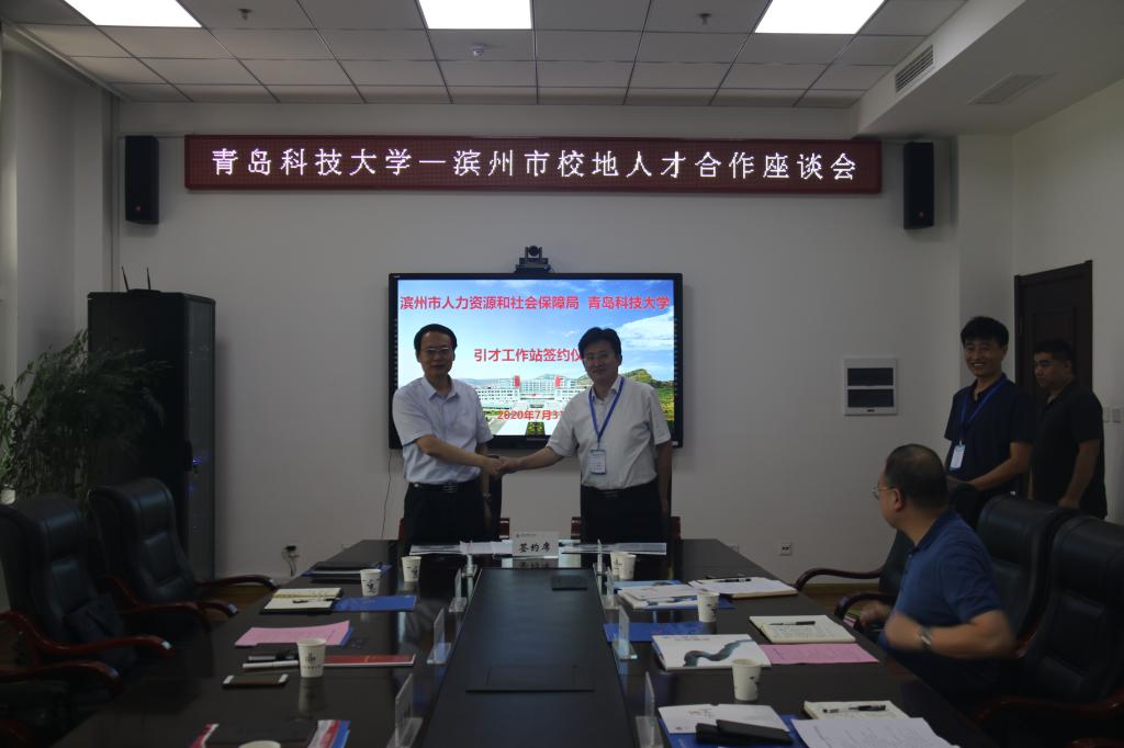 仪式上,丁林与李荣舜共同为“山东省滨州市引才工作站”揭牌。学生工作处处长王锋业与李荣舜签署滨州市引才工作站合作协议。大学生就业指导中心主任、学生处副处长徐华主持座谈会,机电学院、自动化学院分管学生工作副书记参加了座谈。