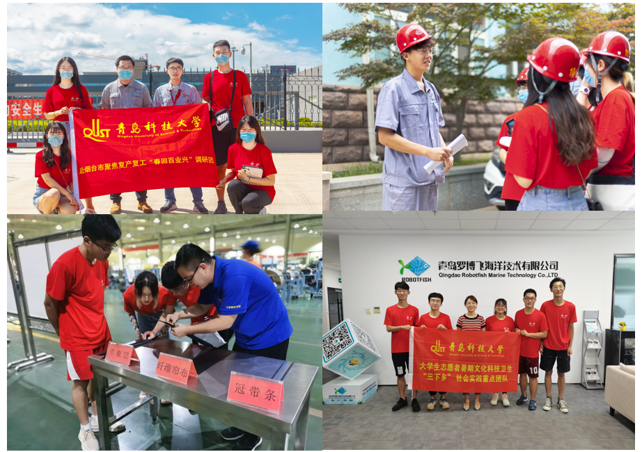 疫情防控常态化形势下,企业加快复工复产,恢复正常生产生活秩序。各实践团队结合实地走访、访谈、问卷调查等形式,了解疫情防控下企业复工复产进度,调研地摊经济发展情况,助力加快复工复产。赴烟台市聚焦复工复产“春回百业兴”调研团,深入烟台石药集团百克山东生物制药有限公司、烟台泰鸿橡胶有限公司和山东恒邦冶炼有限公司三家企业,针对疫情复工复产问题进行调研,获得了有效的数据结果;赴青岛“丝路青岛、深耕蓝海”实践调研队和赴广饶“青科汇智”橡胶工业研究院访问团,结合学科专业优势深入企业调研学习,促进理论与实践相结合;青岛“助力疫情防控”调研团,在校内外调研普及疫情防控知识,参与疫情防控宣讲志愿行动 ;京津鲁地区小微企业复工复产情况调研团,深入企业探寻小微企业在应对不可抗事件时的应对策略与生存之道;关于疫情对群众心理健康、生活及经济的影响“抗疫尖刀连”调研云小队,在家乡驻地深入街头小巷走访调研,为疫情防控和经济社会发展助力。