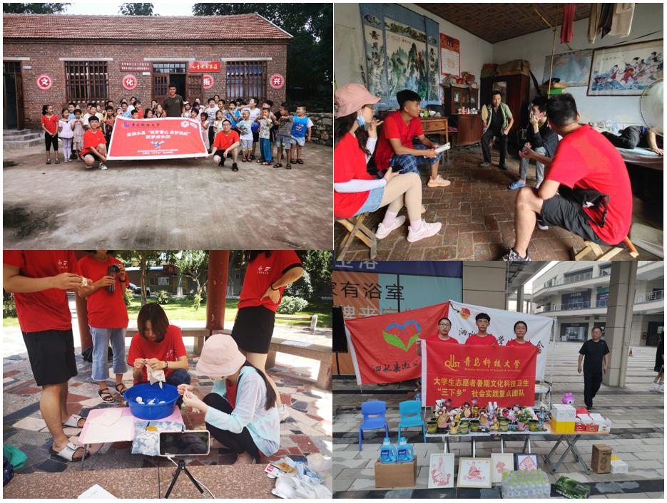 各实践团队积极投身志愿服务和返乡社会实践活动,结合义务支教、特殊群体关爱、参与环保抗洪、返乡志愿服务、科学调研等形式,奉献爱心,回馈家乡,为家乡和社会发展出一份力。赴郓城县玉皇庙镇“让爱传递”教育关爱团、赴莱芜“爱心行”志愿服务团、赴泗水县“筑梦童心 启梦远航”筑梦成长团、对“留守儿童”教育现状调查团、高材生返家乡敬老爱老实践队、赴济南黄河流浪动物关爱中心“守护天使”爱心调研团等实践队分别围绕义务支教、关爱特殊群体等内容开展了形式多样、丰富多彩的实践活动,奉献爱心,传递正能量;“伴我家乡行”社会实践服务团、“家乡发展我助力”实践团队、赴青岛市小麦岛周边海洋垃圾调研队、赴昌黎县荒佃庄镇“建设美丽乡村”环保抗洪团等实践队积极投身返乡社会实践,参与到家乡建设和环保抗洪行动中,发挥了当代大学生的光和热;赴临清市老赵庄镇“弘扬新思想,传承传统文化”实践团、“巧手扎锦绣,靛蓝染春秋”扎染推广小队分别到基层弘扬和推广传统文化,传播习近平新时代中国特色社会主义思想,促进文化传承和发展。