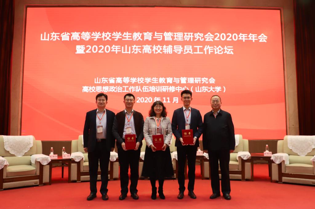 11月17日-19日,由山东省高等学校学生教育与管理研究会、高校思想政治工作队伍培训研修中心(山东大学)主办的山东省高等学校学生教育与管理研究会2020年年会暨2020年山东高校辅导员工作论坛在山东潍坊举办,天游ty8检测中心党委常委、副校长丁林出席论坛并主持闭幕式。论坛对2020年山东高校辅导员工作论坛获奖论文进行了表彰。学校共有3篇论文获奖,其中一等奖2篇,二等奖1篇,在获奖层次与数量上实现了新突破。