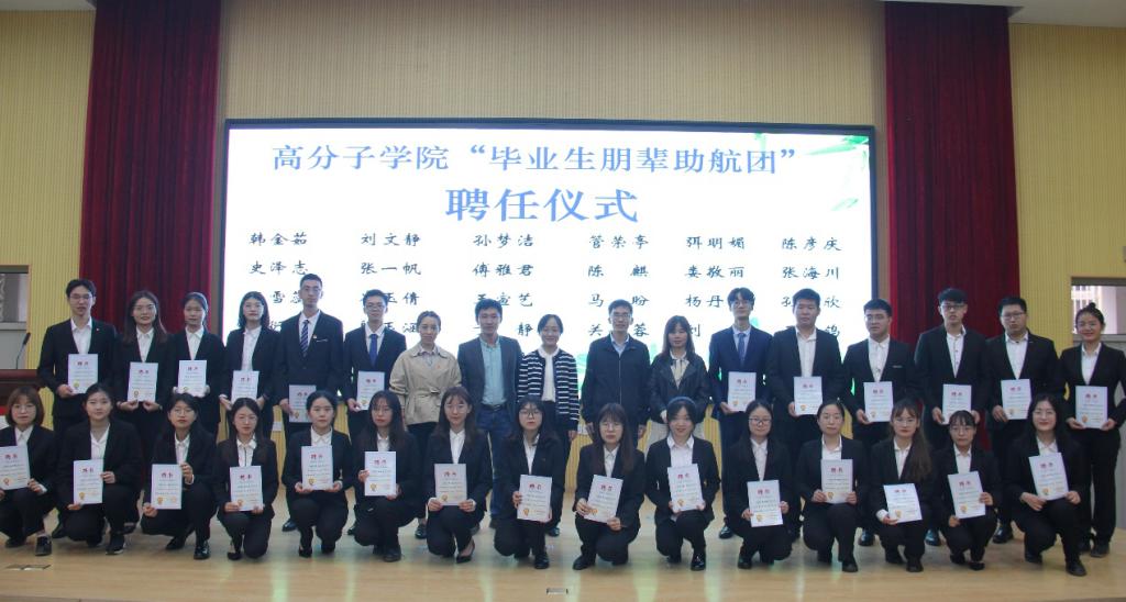 学院组建由第二十三届研究生支教团、保研、就业和自主创业等共28名学生组成的“毕业生朋辈助航团”,充分发挥引领示范和榜样带动作用,协助毕业班辅导员在毕业生正确择业/就业观引导、心理健康服务、毕业困难生学业帮扶、就业信息精准推送等各方面开展“打包式”贴心服务,为高分子学院全面落实立德树人根本任务,优化服务育人精细度,全面践行高质量就业发展要求做出贡献。