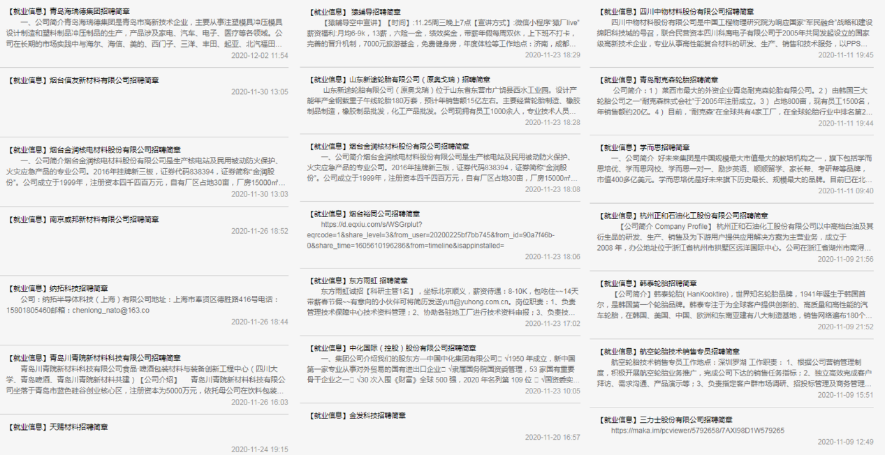 学院依托高分子材料主干专业优势,充分挖掘校友资源,广泛拓展就业渠道,精准对接企业需求,准确把握供需匹配,自今年9月“暖心就业季”启动以来,共举办专场招聘会50余场,共有2021届硕士和本科毕业生共计450余人次参与专场宣讲。学院与山东道恩集团、浙江天铁集团、青岛泰凯英轮胎有限公司、江阴海达橡塑股份有限公司、浙江大胜达包装股份有限公司等10余家企业达成人才培养深度合作战略,共同推动2021届就业工作高质量开展。