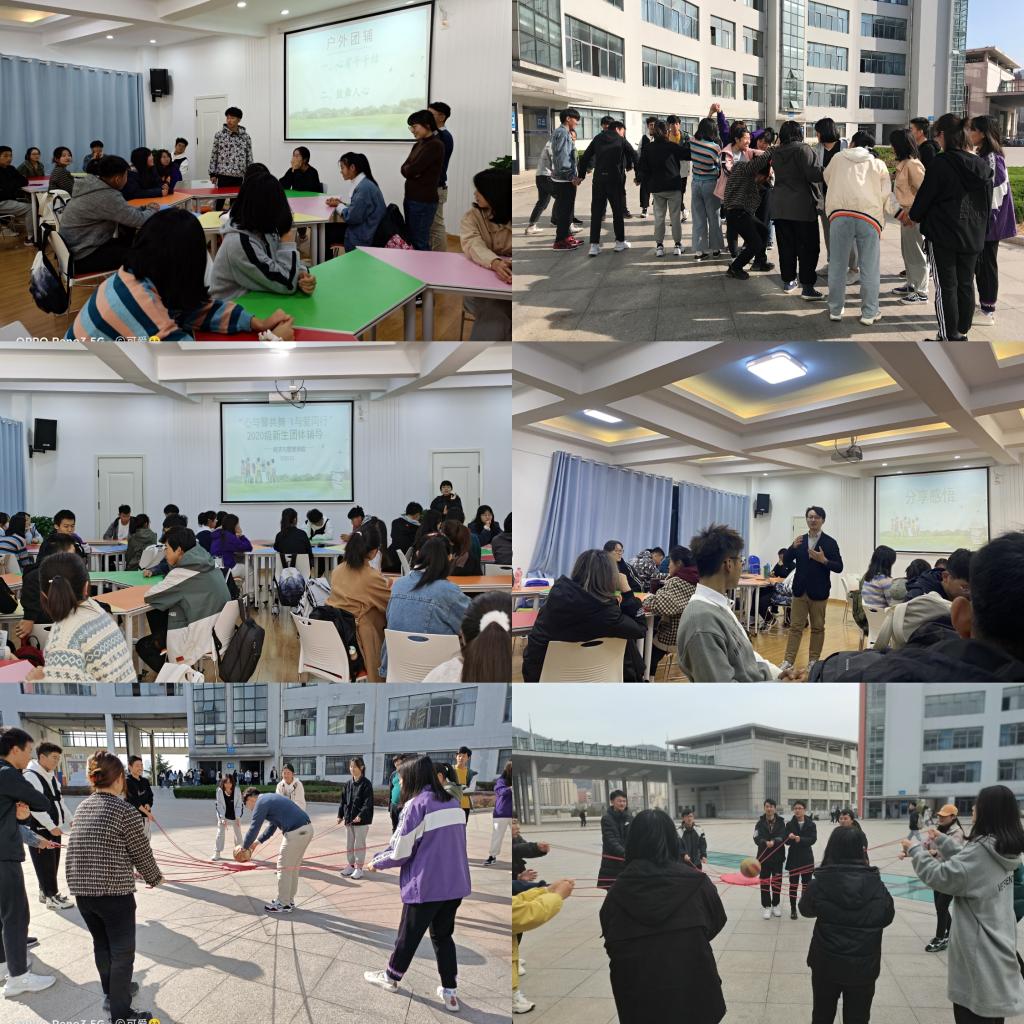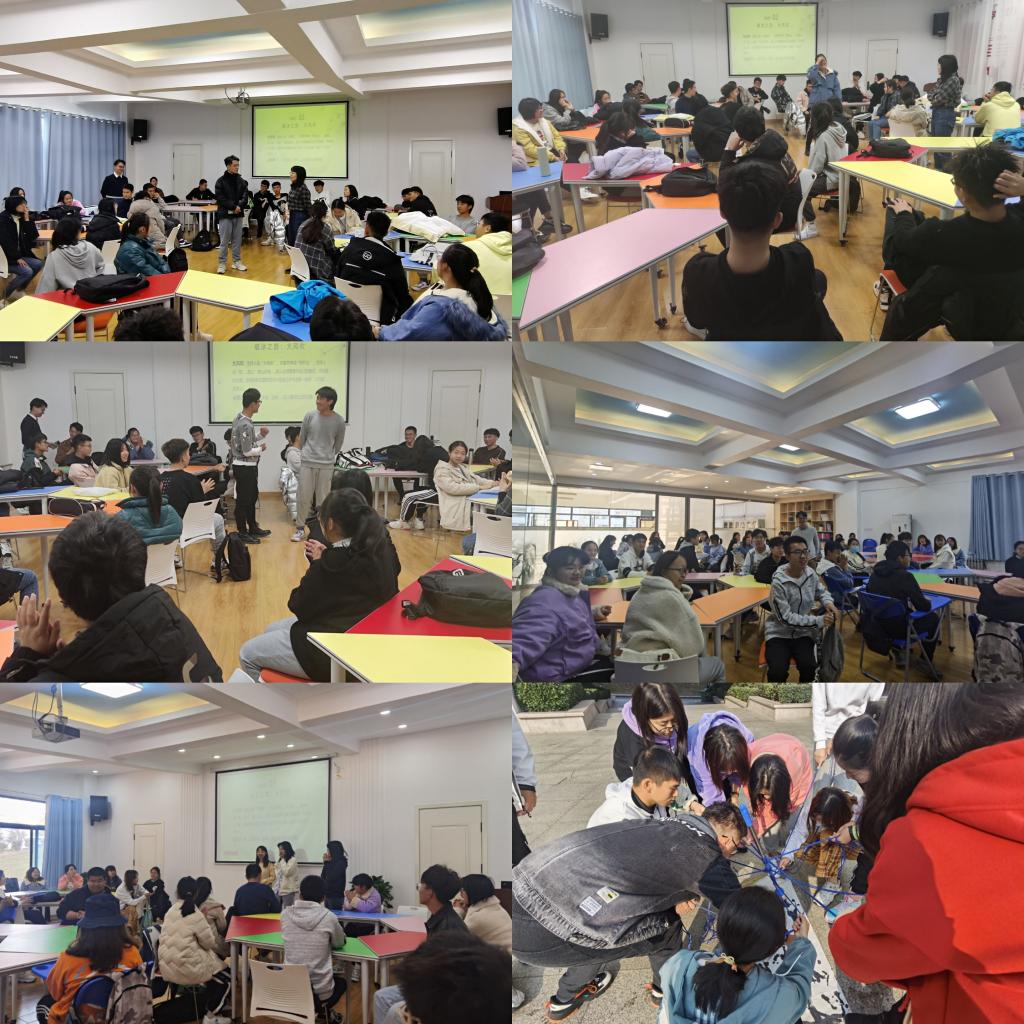 此次团辅以专业为单位开展,专门针对新生入学以来的适应性问题进行专题团辅活动,活动分为室内和户外两部分。其中,室内活动设置“雨点变奏曲”“大风吹”“滚雪球”“大学环游记”等4个环节,通过切合00后特点的游戏引领同学们跳出原有的“交际舒适圈”,变换团队组成,加强成员之间的熟悉度、配合度和向心力;户外活动设置“心有千千结”“鼓舞人心”“神笔马良”等3个环节,从陌生到熟悉,从羞涩胆怯到默契配合,同学们齐心协力完成了一个又一个的挑战,在欢声笑语的氛围中逐渐学会团结协作、积极沟通的作用。财务管理专业的肖洋同学感慨说道:“此次新生团体辅导拉近了我们彼此间的距离,减少了隔阂与陌生,增进了集体凝聚力和荣誉感,为未来大学四年的学习与生活注入了一份动力与温暖。”