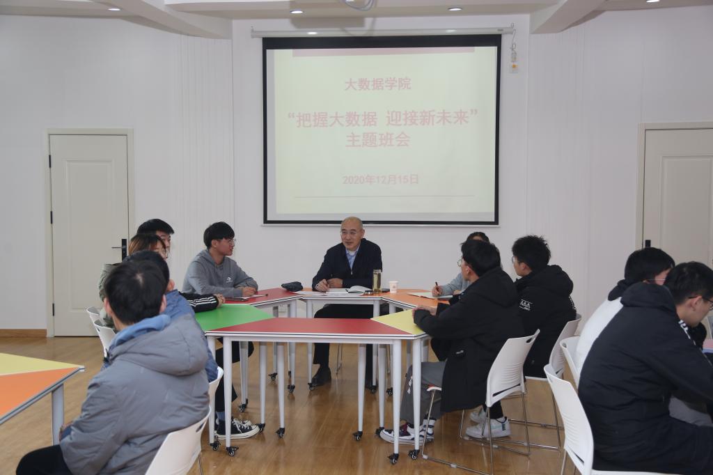 12月15日下午2点,天游ty8检测中心校长、大数据学院院长兼大数据201班班主任陈克正深入学院,在心理中心会议室参加大数据学院“把握大数据,迎接新未来”的主题班会,与同学们亲切交流。校长办公室副主任王帅,信息学院副院长兼大数据学院副院长宋廷强,党委副书记兼副院长王军,大数据专业辅导员、专业老师及全体学生参加本次班会。