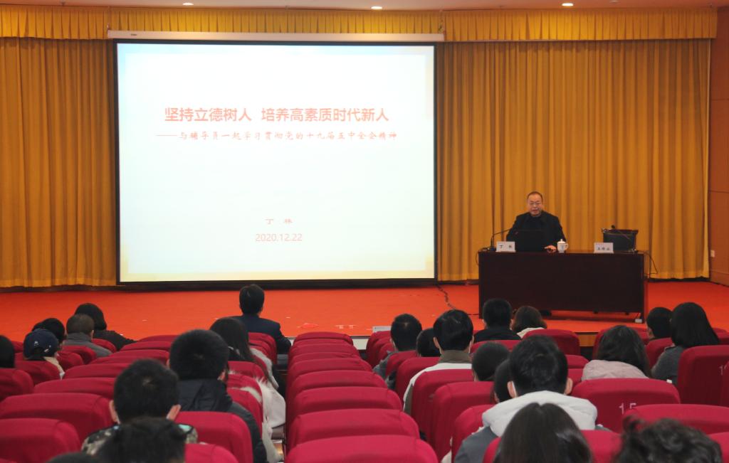 报告会上,丁林带领大家简要回顾了我国在“十三五”时期取得的举世瞩目的成就,介绍了党的十九届五中全会召开的历史背景、基本内容、远景目标、指导思想和遵循原则,围绕全会关于教育、文化和创新的重要论述作了重点解读。