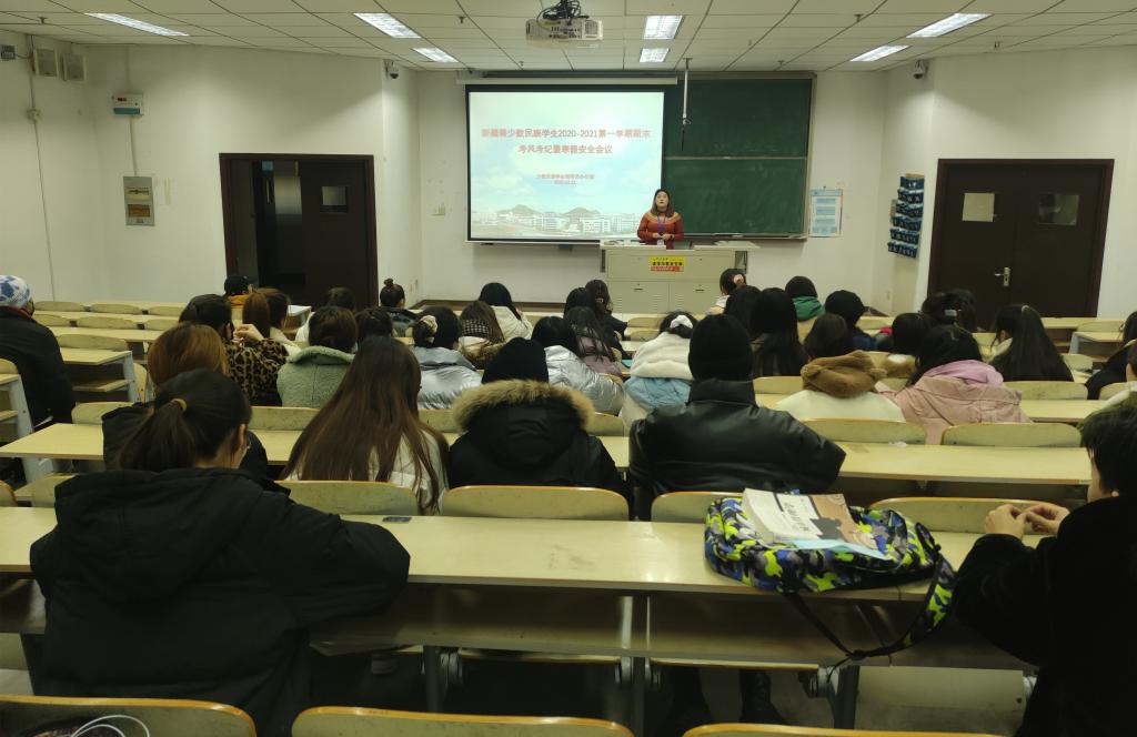 2020年12月31日中午,少数民族学生工作办公室分别在崂山、四方两校区组织召开2020-2021年度期末考风考纪暨寒期安全会议。会议由两名少数民族辅导员主持,两个校区共90余名新疆籍少数民族学生参会。