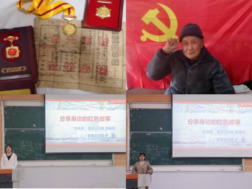 红色基因调研员挖掘整理传播红色故事。为迎接中国共产党建党一百周年,挖掘学生身边、家乡红色故事海洋学院“红色引擎”党员工作站在寒假期间开展“探寻红色记忆、追忆峥嵘岁月”主题系列活动。红色基因调研员深入探寻家乡老党员、老战士的军旅生涯,讲好红色故事,追寻历史细节,弘扬革命精神。开学初,地雷战革命老区所在地的李佳怡同学和红色军旅家庭的于瀚同学等,分别整理了文字视频资料,分享所见所闻所感所悟。她们感悟到,历史是有温度的,只要靠近,就会被温暖,青年更应立报国之志,学报国之才,践报国之行。学院借助公众号平台等新媒体拓宽传播辐射面,以此打造无围墙的红色教育。