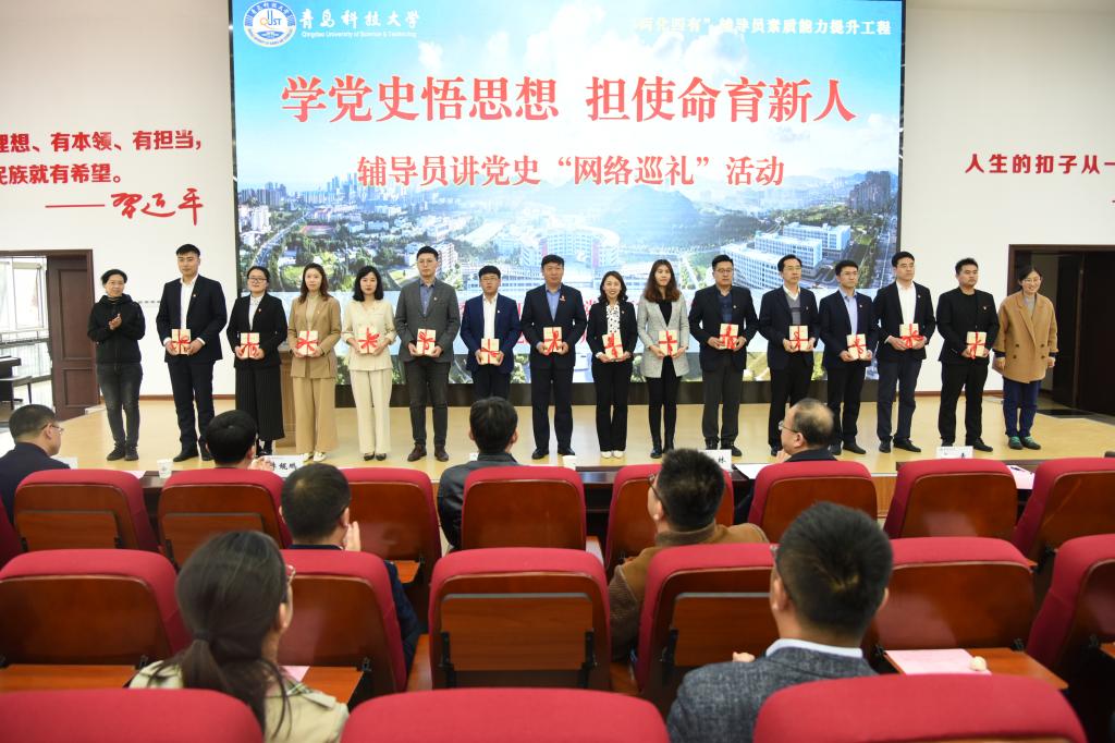党委学生工作部副部长王丽宣读了《天游ty8检测中心学工系统开展党史学习教育的实施方案》。党委副处级组织员齐青、党委研究生工作部副部长王伟为2020年度优秀辅导员代表赠送《论中国共产党历史》《中国共产党简史》等党史学习教育书籍。