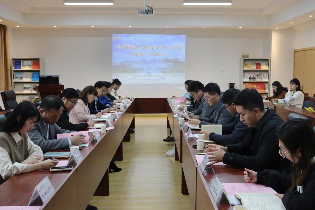 李航汇报了“职业规划季-考研备战季-学科竞赛季-就业指导季”四季主线的大三年级关键节点工作,并对“考研助力季”工作进行布置安排;副组长、法学院学工办主任付继航分享“辅导员如何精准助力学生考研上岸”,明确辅导员在学风建设具体推进中的有效抓手;副组长、环境学院学工办副主任王伟欣分享学院考研“学霸现象”的故事,强调筑牢思想引领“总开关”才能稳住学风建设“压舱石”。各学院大三年级专兼职辅导员也结合学院实际,研讨了每个学院在不同学科背景和育人体系下助力考研的典型举措。
