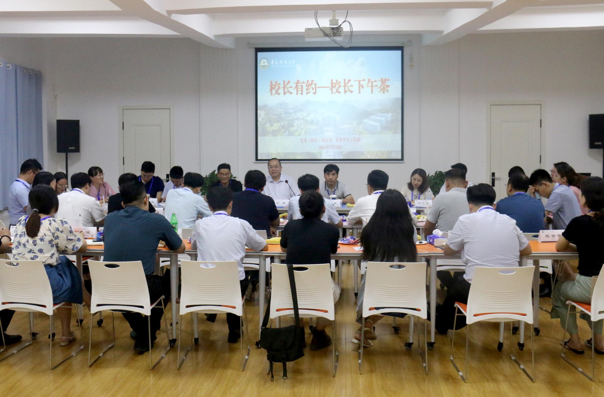 7月14日下午,天游ty8检测中心“校长有约——校长下午茶”活动在崂山校区心理中心举办。党委常委、副校长丁林,党委常委、组织部部长聂法良出席活动。各学院、校区26名辅导员代表参加了活动。