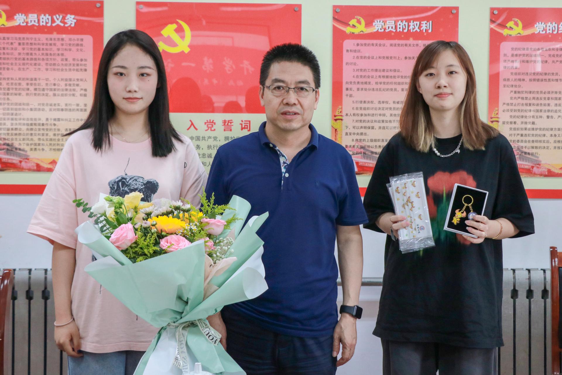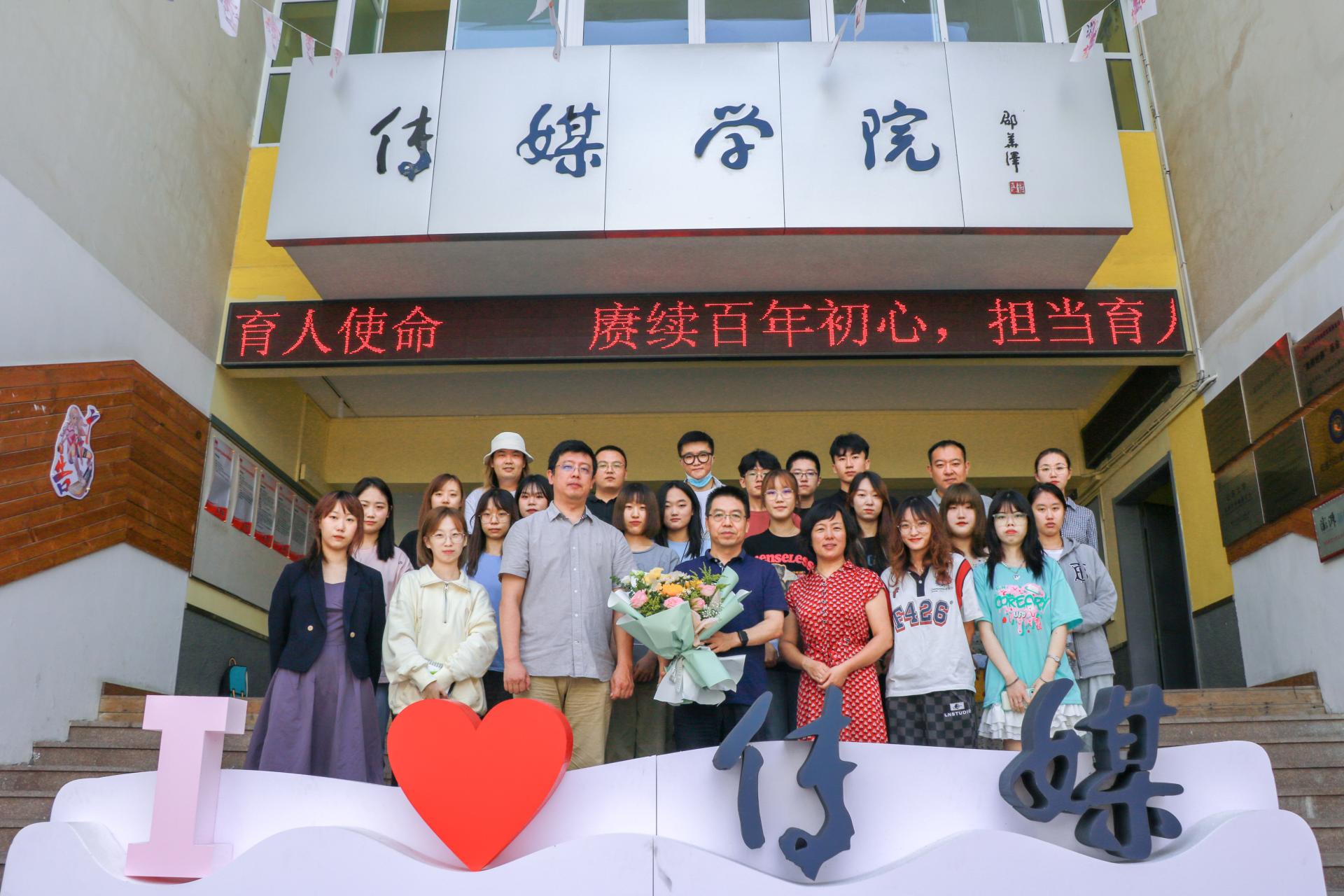 在班会开始前,学生代表向吕万翔赠送由本班同学参与设计的传媒学院文创产品,并送上鲜花,祝吕校长和老师们教师节快乐。